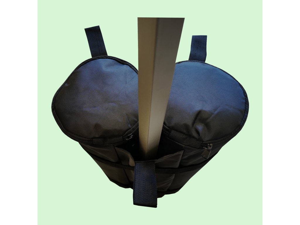 Questi sacchi sono progettati per essere riempiti con sabbia e poi fissati alle gambe del gazebo.